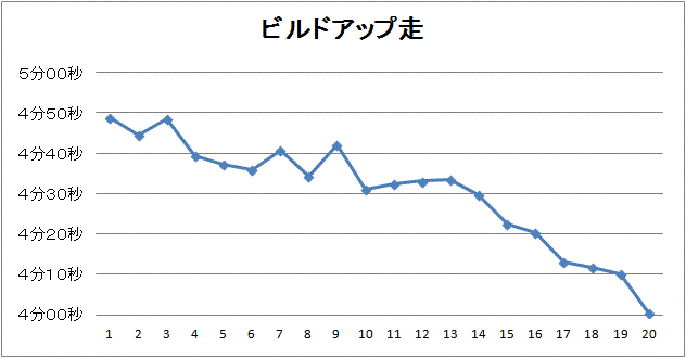 グラフにしてみるとなんとなくビルドアップ走になってますが、