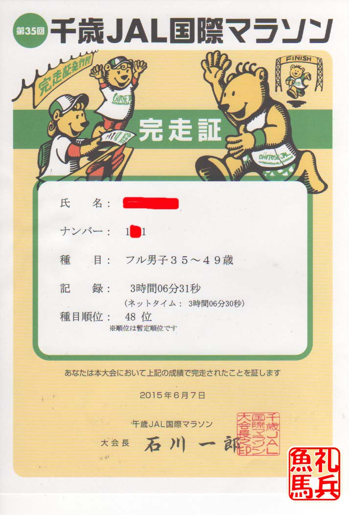 6月7日(日)、千歳JAL国際マラソンに出場しました。