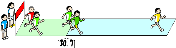 走る男みっちゃん選手がものすごい勢いでスタート地点から飛び出していきます。