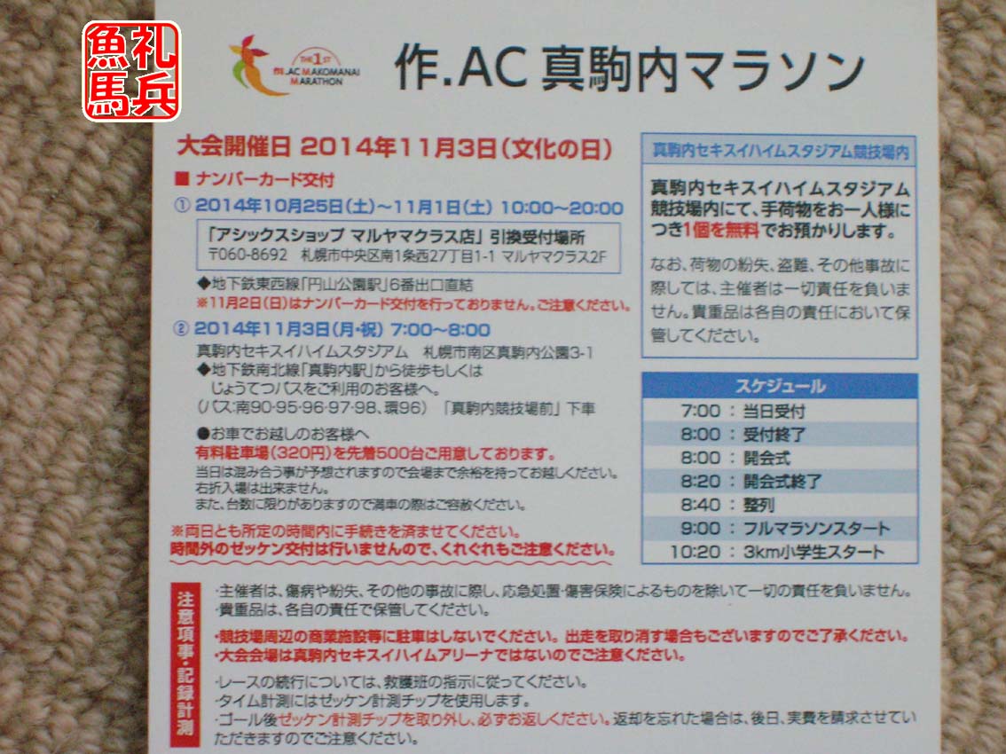 10月17日(金)に作.AC真駒内マラソンからハガキが届きました。