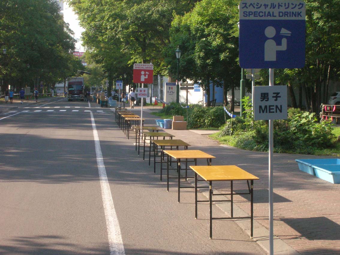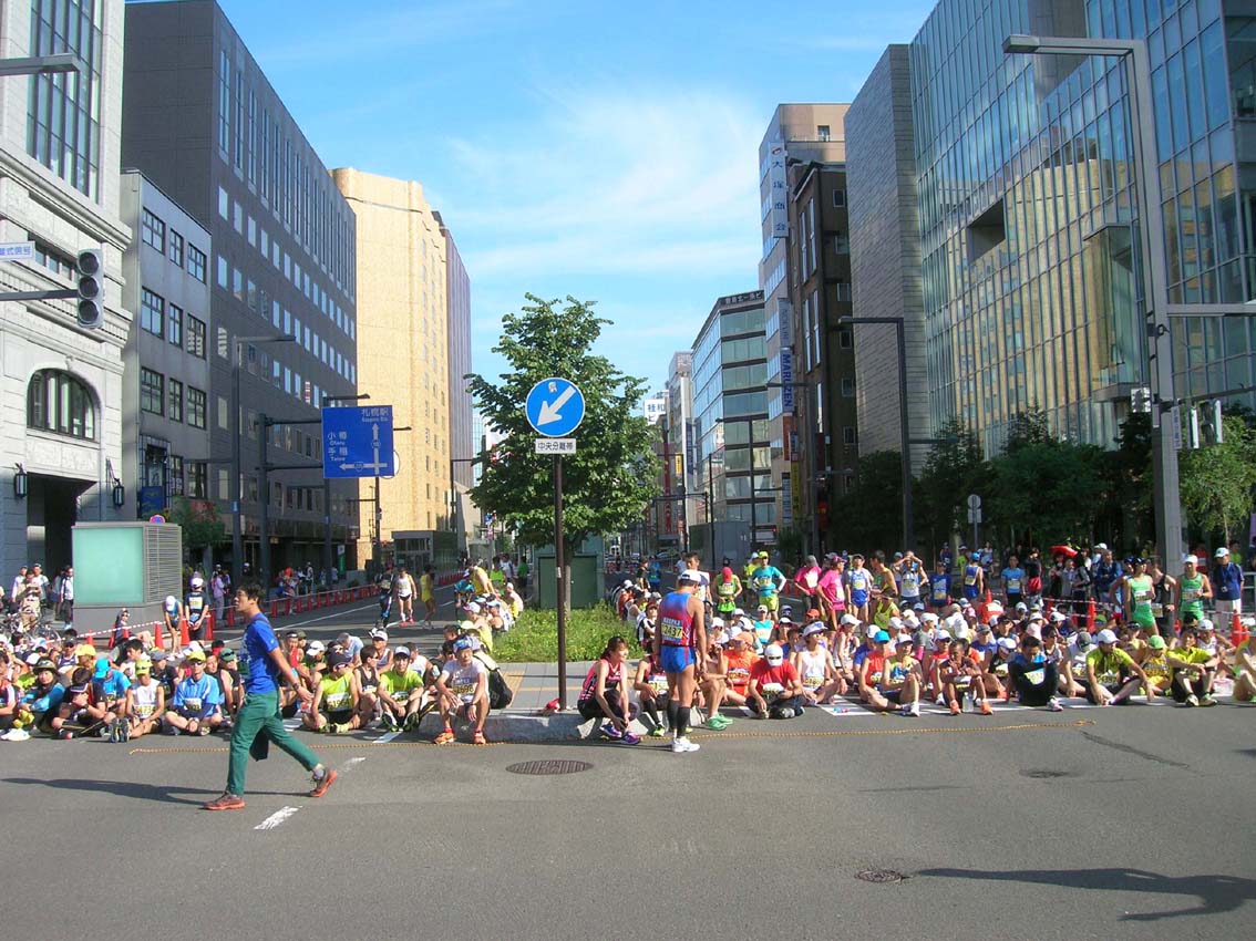 北海道大学を出るとすぐ、10.8kmの給水地点と、11km地点。