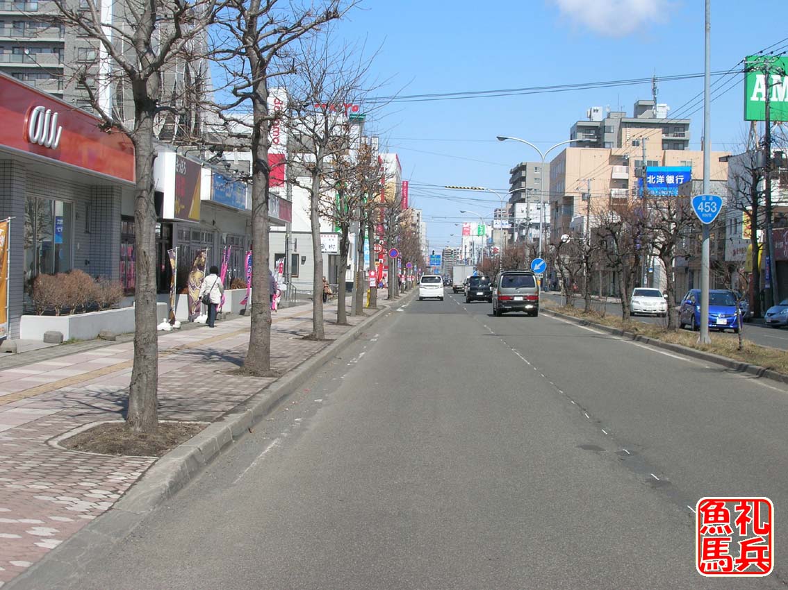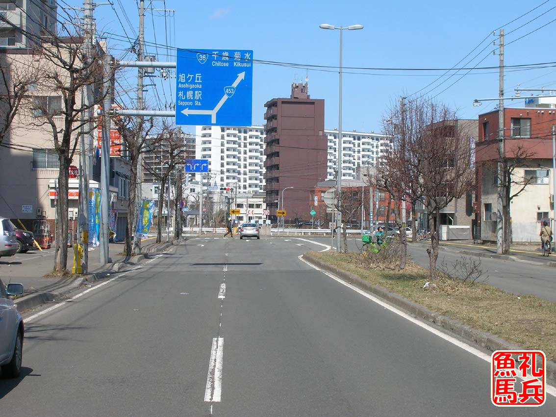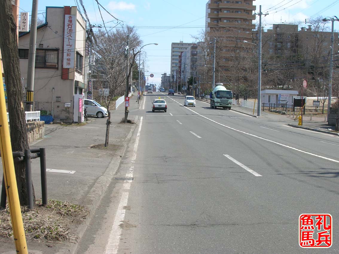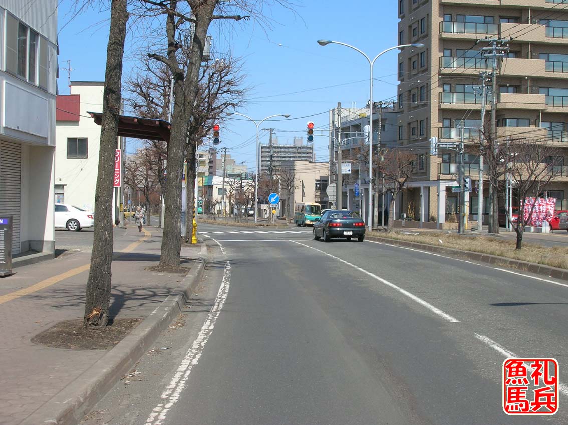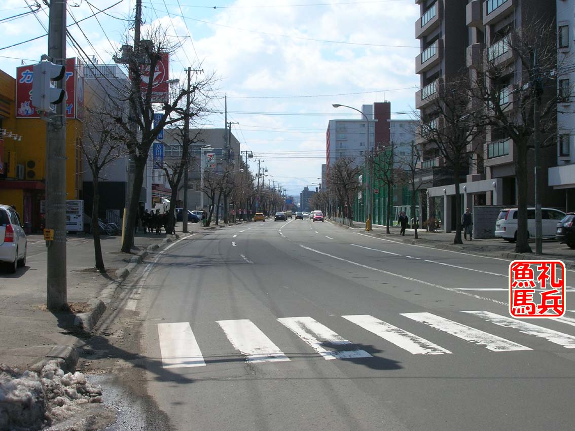 この交差点を左折すると平岸通りに入り、すぐ5km地点です。