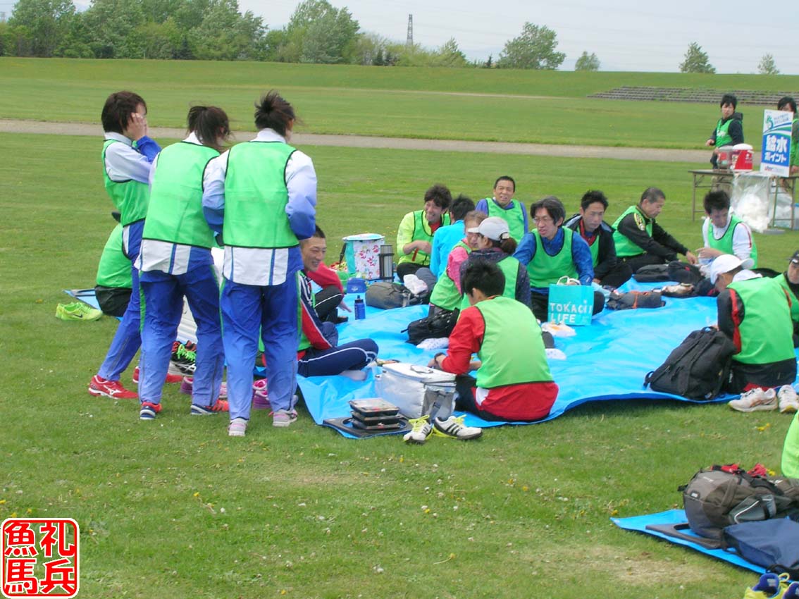 お弁当を食べながら同じクラスの参加者やホクレン女子陸上部の選手と談笑しました。